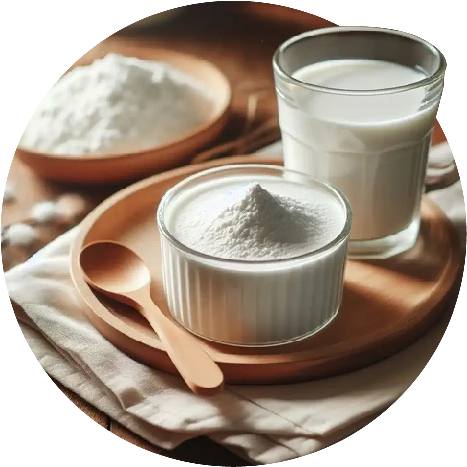 Sweet cream buttermilk is the original by-product when making sweet cream butter from fresh cream. It is a fine powder and is standardized at a milk fat content of minimum 11.1%.